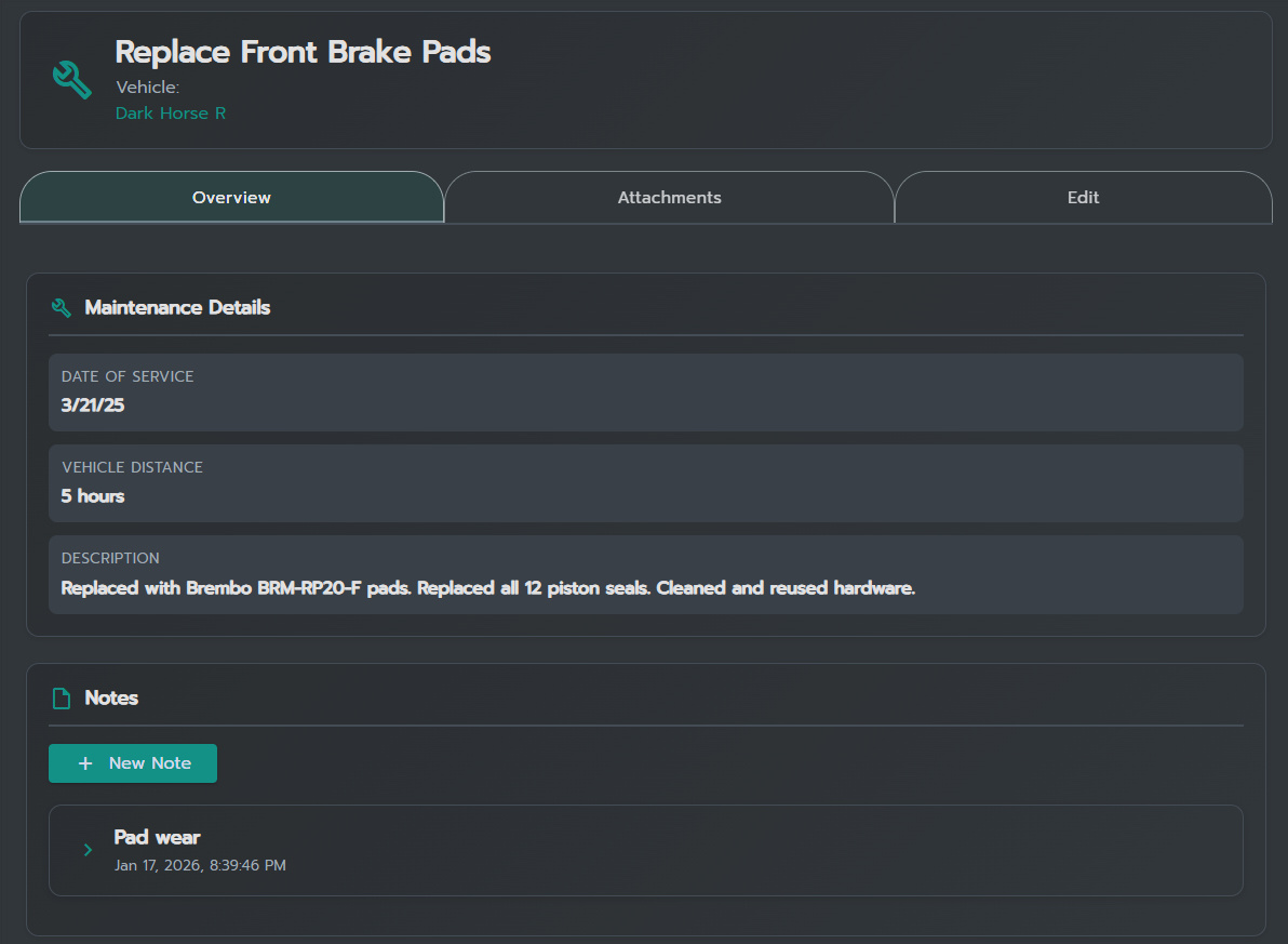 Track service and repairs over time with notes and attachments.